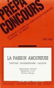 Geneviève Dewulf-Allene, Auteur ; Elisabeth Coss, Auteur ; Patrice Bougy, Auteur ; Laurent Versini, Préfacier, etc. | Nancy [France] : Presses universitaires de Nancy | Prépa-concours | Cop. 1991Facilite l'étude de la passion amoureuse, thème au programme des classes préparatoires aux concours des grandes écoles scientifiques et présente les épreuves de différents concours.