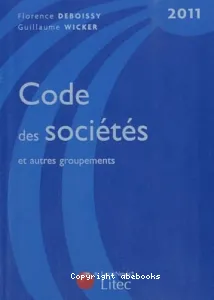 Florence Deboissy, Éditeur scientifique ; Guillaume Wicker, Éditeur scientifique ; Alain Viandier, Préfacier, etc. | Paris : Litec | Codes bleus, ISSN 1622-6208 | Cop. 2010Ce code regroupe l'ensemble des textes, complétés par des annotations de jurisprudence, relatifs aux sociétés particulières, notamment sociétés professionnelles et coopératives, à l'environnement juridique et fiscal des sociétés, aux groupements[...]![]()