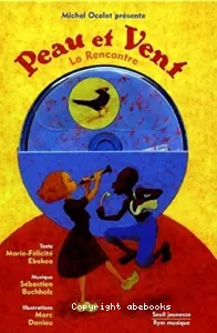 Michel Ocelot, Auteur ; Marie-Félicité Ebokea, Auteur ; Richard Mithouart, Auteur ; Richard Mithouart, Illustrateur | Paris : Seuil Jeunesse | DL 2000Rencontre entre la petite fille, Vent, qui vit en Europe, et Peau, petit garçon africain. Vent souffle dans une flûte pendant que Peau tape sur tout ce qu'il trouve. Ils partent à la recherche l'un de l'autre... et ils se trouvent. Rencontre ent[...]![]()